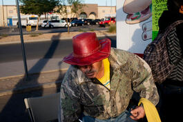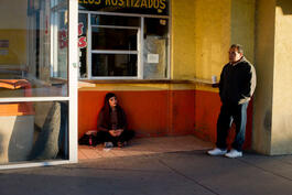 USA. Nogales, AZ. 2016. A man waiting in the downtown office...