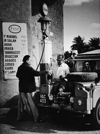 Africa. Algerian Sahara. 1957. George Rodger filling up before...
