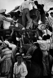 EGYPT. Port Said. Hungry crowds attacking a truck with fish....