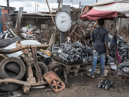 Ghana. Accra. Agbogbloshie. 2016. Reclaimed parts being weighed...