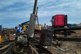 Ghana. Accra. Agbogbloshie. 2016. Men scavenging for parts at...