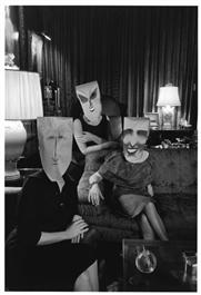 USA. Family at dinner. (from the Mask Series with Saul Steinberg),...