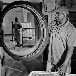 USA. Cleveland, Ohio. 2016. A worker cleans at the Evergreen...