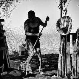 USA. Robbinston, Maine. 2016. A man works in his garden.
