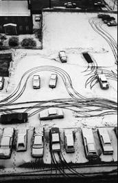 USA. New Hampshire. City of Manchester. Parking lot on a snowy...