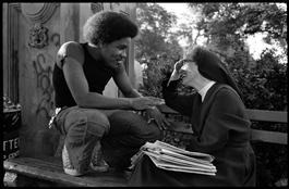 New York. André KERTESZ showing lens to Nicolas Ducrot. 1977