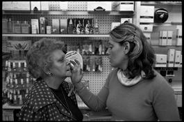 USA. Manchester, New Hampshire. Drug store sales lady applying...