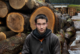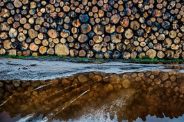 Felled Spanish Oak trees, stacked at...