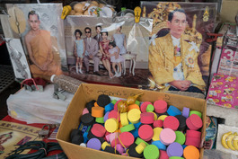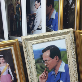 THAILAND, Bangkok, 2015/05. Depictions, statues, of Thai King...