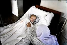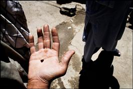 A man wounded in the riots of may 29 2006, which erupted in Kabul...