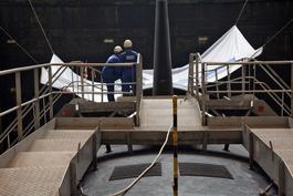 A tarp is placed over the propeller of the submarine to prevent...