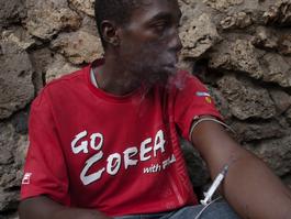 TANZANIA. Dar Es Salaam. 2011. A drug user in Sheraton, Temeke...
