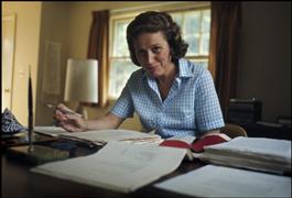 USA. Svetlana ALLILUYEVA. 1969. Svetlana at her desk at home,...