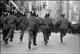 FRANCE. Paris. CRS (riot police) in the street during a charge...