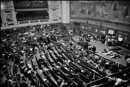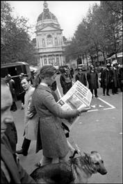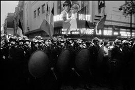 "I photographed most of the Paris demonstrations : the 'Sorbonne crisis' as well as the moment it was abandoned, with students shouting 'Too late, civil police, the Sorbonne is no temple'. I also photographed the occupation of the Odeon theatre, the striking Renault factories, the burial of Gilles Tautin, the big pro-De Gaulle demonstration on the Champs-Elysees and the barricades in the Latin Quarter, on Rue Gay Lussac."