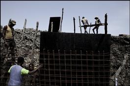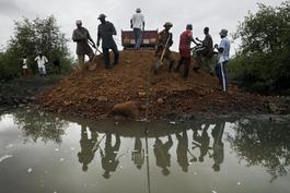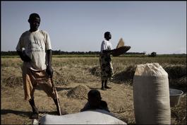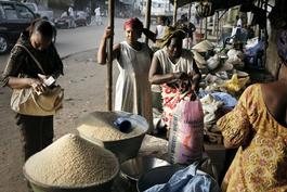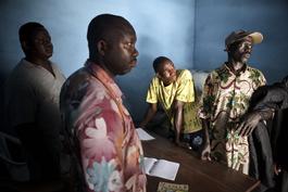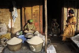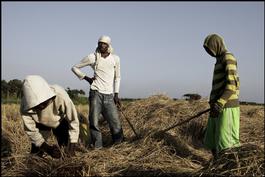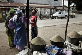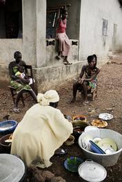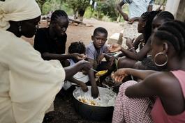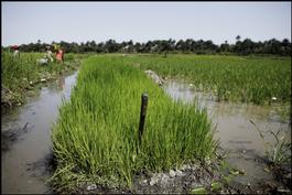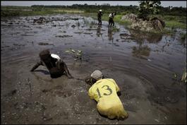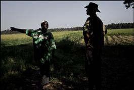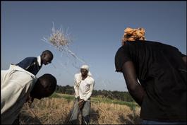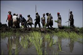 GUINEA. Villagers singing and clapping while transplanting rice...