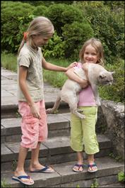 Latvia. Lielupe, Jurmala. 2007. Adelia and Maria Adamovich playing...