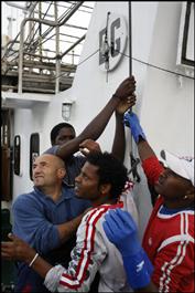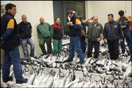 SPAIN. Galicia. Bonito tuna fishing on the Pachilan. 2008. Preparing...