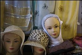 TUNISIA, Kairouan. Shop selling traditional outfits.