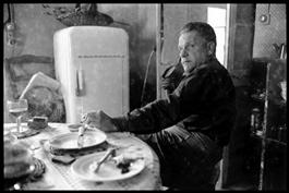 France. Writer Lawrence Durrell tests a bowl of hot soup in...