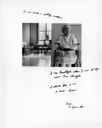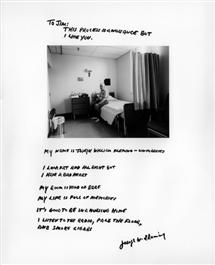 Jim Goldberg was commissioned by the Cambridge Art Council of Massachusetts to create a permanent, site-specific installation in the Neville Manor Nursing Home. The resulting body of work also became a touring exhibition that incorporated sound, artifacts and sculptural elements.