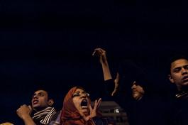 EGYPT. Cairo. 2011. Young protestors shout Anti-Mubarak slogans...
