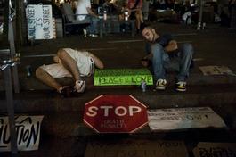 USA. New York City. 2011. An exhausted protestor from Occupy...
