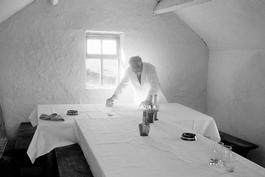 GB. England. Walshaw Moor. One of the caterers clears up after...