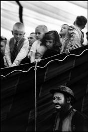At a three-ring show in 1958 Davidson climbed to the top of the tent to view the performances of famous lion-tamer Clyde Beatty and human-cannonball Hugo Zacchini. His deeper interest was in the daily lives of circus people – the roustabouts, riggers, a pretty girl who rode an elephant in the “spec”, and an intimate series of a dwarf clown.
