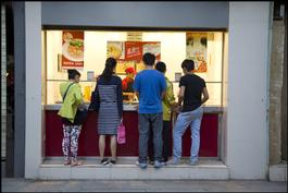 75010. Faubourg St. Martin. Political discussion. FRANCE. Paris....