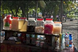 INDONESIA. BALI. Food stall near the GOA LAWAH Hindu temple by...