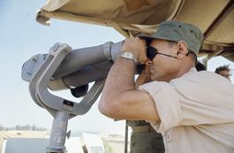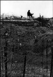 SINAI. 1971. An Israeli sentry at a strongpoint near the Suez...