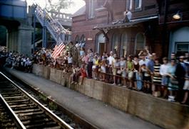 USA. Newark, Delaware. 1968. Robert Kennedy funeral train.