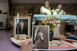 USA. Montana. August 2012. Father Charles prepares the eucharist...