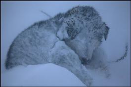 THE ARCTIC. The dog Elvis, during a blizzard storm, like the...