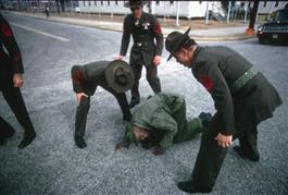 USA. Parris Island, South Carolina. 1970. Recruit is harassed...