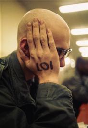 USA. Parris Island, South Carolina. 1970. A recruit is driven...
