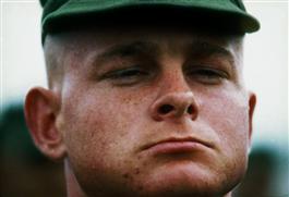 USA. Parris Island, South Carolina. 1970. A new recruit is forced...