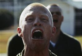 USA. Parris Island, South Carolina. 1970. Recruits shout "yessir"...