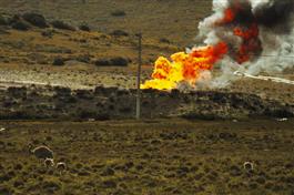 CHILE. Magellan Straits. Punta Arenas, old wreck and ENAP Oil...