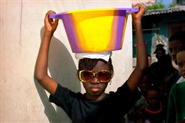 SENEGAL. Island of Goree, near Dakar. A boy carries French baguettes....