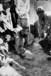 EGYPT. Port Said. Hungry crowds attacking a truck with fish....