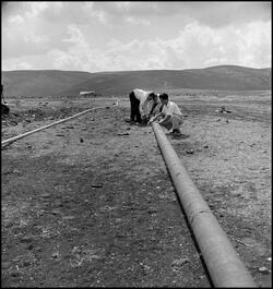 ISRAEL. 1954. Yemenite welder inside a large concrete pipe, part...