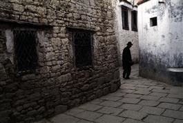 Tibet. Lhasa. 2001. Tibetan walking through Barkhor quarter.