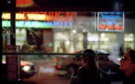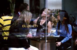 USA. New York City. 2002. Times Square. Rendezvous in a café...