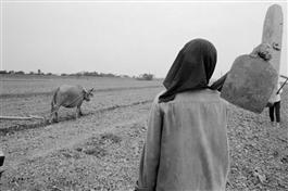 VIETNAM. Hanoi region. 1990. A child works in a field with a...