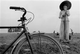 VIETNAM. Hanoi region. 1990. A Vietnamese woman with a hoe watches...