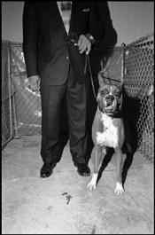 USA. New York City. 2003. Owner and dog in the "make" area.