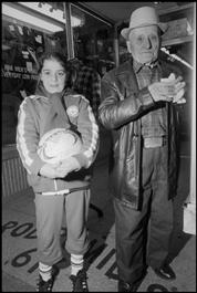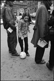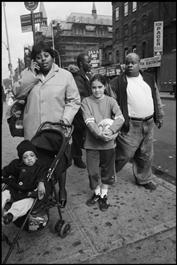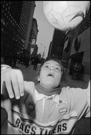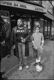 USA. New York City. 2002. Nina with soccer ball and blind man...