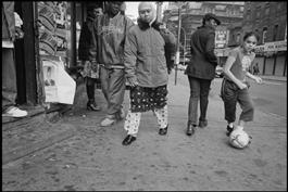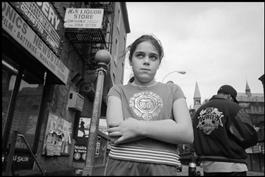 USA. New York City. 2002. Nina with soccer shoes on the corner...
